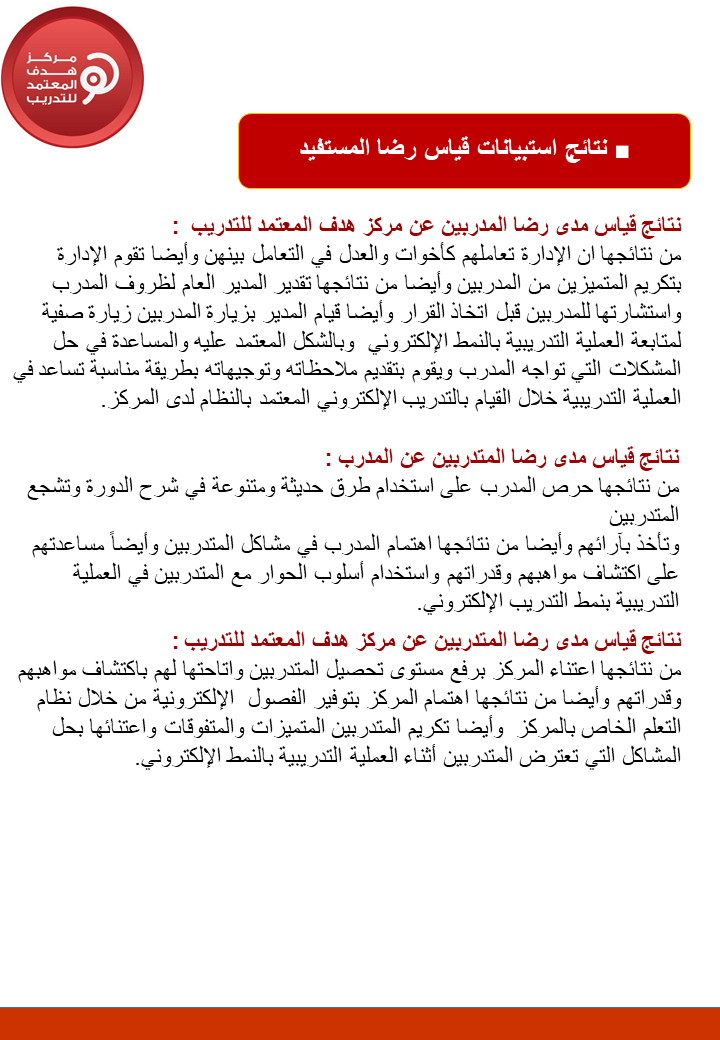مقياس تحديد رضا منسوبي مركز سهم المعتمد ( المتدربين)