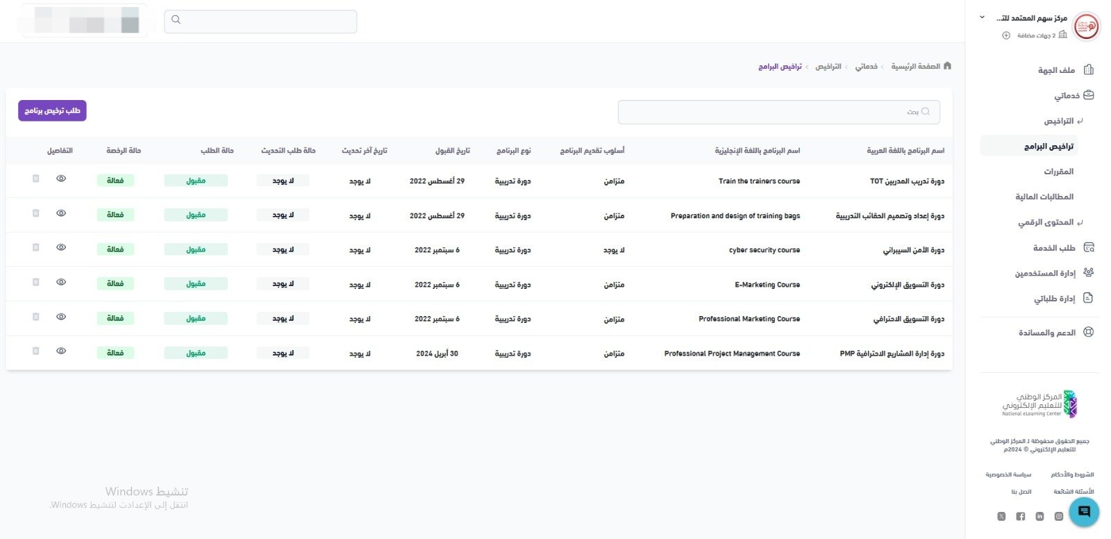- رخصة برنامج (دورة تدريب المدربين TOT)